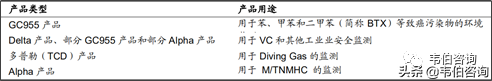 據(jù)不完全統(tǒng)計(jì),中國目前從事VOCs治理企業(yè)超千家,其中約一半以上的企業(yè)主營除塵、脫硫、脫硝治理等大氣治理或其他業(yè)務(wù),且同時(shí)兼顧經(jīng)營VOCs治理業(yè)務(wù)。隨著中國政府對(duì)于VOCs治理日益重視,環(huán)保要求日趨嚴(yán)苛,石化、涂裝、造紙等行業(yè)的VOCs排放治理標(biāo)準(zhǔn)將逐步完善,有望推動(dòng)本土企業(yè)進(jìn)一步發(fā)展以滿足日趨增長的VOCs治理需求。 一些國內(nèi)企業(yè)通過并購擁有核心技術(shù)的國內(nèi)外企業(yè)、成立VOCs治理業(yè)務(wù)子企業(yè)以及向產(chǎn)業(yè)鏈上下游拓展等方式,開始擴(kuò)大業(yè)務(wù)規(guī)模和提升競爭力。如聚光科技早在2010年便成立了杭州清本環(huán)保工程有限公司,專職負(fù)責(zé)VOCs的監(jiān)測(cè)與治理。公司除了推出一系列VOCs監(jiān)測(cè)的相關(guān)產(chǎn)品,還進(jìn)一步在2012年收購荷蘭BohnenBeheeer公司75%股權(quán),獲得其旗下全資子公司Synspec公司國際領(lǐng)先的VOCs監(jiān)測(cè)技術(shù)和團(tuán)隊(duì)。Synspec公司已研究VOCs在線監(jiān)測(cè)技術(shù)和產(chǎn)品近20年,其產(chǎn)品在歐美國家獲得客戶的廣泛認(rèn)可。 根據(jù)聚光科技收購BB公司的可行性報(bào)告,收購前Synspec公司的VOCs在線監(jiān)測(cè)設(shè)備全球銷量超過4,000套,全球囊括50%的市場(chǎng)份額,在中國銷量約200套,占據(jù)中國市場(chǎng)90%以上。 圖表2:聚光科技旗下Synspec公司產(chǎn)品類型及用途